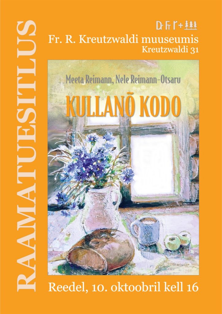 10. oktoobril kell 16 toimub Kreutzwaldi muuseumis Nele Reimann-Otsaru uue võrukeelse raamatu „Kullanõ kodo“ esitlus. Autor tutvustab oma raamatut võru ja eesti keeles. Raamatu on illustreerinud kunstnik Merike Läte.